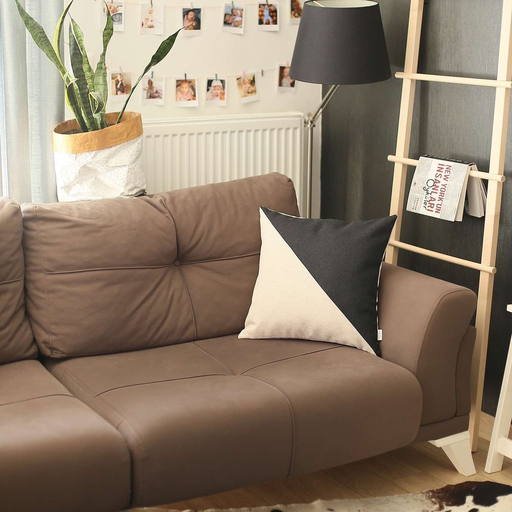 Bring in an eye-catching element to your home with this Black and White Diagonal Decorative Throw Pillow that looks simple yet sophisticated with its modern and minimal design. Divided diagonally with two tones, the milky white side calls for a relaxing vibe in the room while the charcoal black end adds up to a striking contrast. Flaunting the finest Turkish craftsmanship, this pillow is made of premium polyester fabric which is OEKO-TEX Standard 100 certified, that ensures not only top-notch quality and product safety but also enhanced durability and easy spot cleaning. Filled with a soft recycled poly filling for a fluffy look and maximum comfort while the hidden zipper closure around the edges provides a luxurious seamless finish. Pair this contrasting decorative throw pillow against bold or neutral hues to instantly spruce up your living room. 18” x 18” x 1”