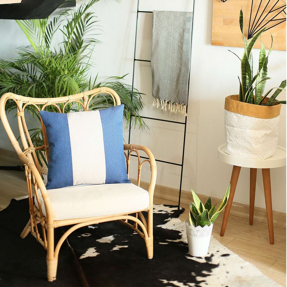 Add depth and timeless elegance to your modern living space with this Blue and White Centered Strap Throw Pillow. The steel blue base looks spectacular with that ivory white midsection to accentuate a sense of tranquility in the room. Handmade in Turkey with 100% polyester fabric which is OEKO-TEX Standard 100 certified to make sure highest product safety and long-lasting durability. This pillow should only be spot cleaned to remove stains and keep its sheen for long. The all-around zipper closure provides a seamless finish that feels super smooth and unified on the touch. You will experience a cozy feel every time you hold this pillow as it is filled with a high-quality soft poly filling inside. Transform your living room with this modern throw pillow that will grab the attention of the guests as soon as they step into your home. 18” x 18” x 1”