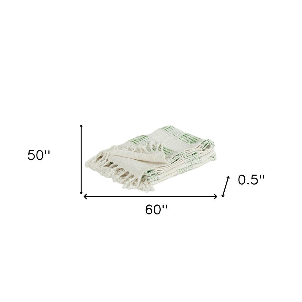 This versatile gray and green woven cotton throw blanket with fringe is a charming accent that brings comfort and charm, wherever it's placed. Features a woven striped design that offers sumptuous softness and texture that you'll cherish for years to come. Made from cotton this blanket will make a great addition to any room it's added to. Add extra texture to your decor and turn your room into an inviting space. This cozy throw blanket makes the perfect add-on to movie nights and lazy afternoons. 50-inch H x 60-inch W x 0.5-inch D