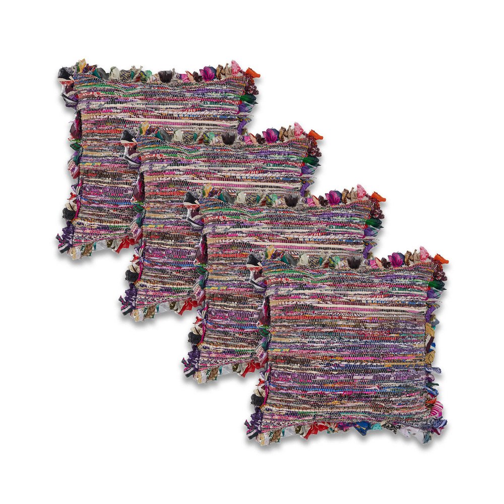 Bring a bit of fashion and zip to your space with this eye-catching and comfy set of four 18-inch pink and blue floor striped rayon throw pillow covers. Ultra durable red and pink rayon has been used to make this decorative pillow cover set a beautiful look that will stand the test of time. Pillow covers are a good idea for anyone that loves to decorate or accent their space with color and texture. Combine with your own fill or insert to add decoration and dimension to your favorite chair, accent your sofa, or to use as part of your bed ensemble. 18.00-inch h x 18.00-inch w x 0.25-inch d.