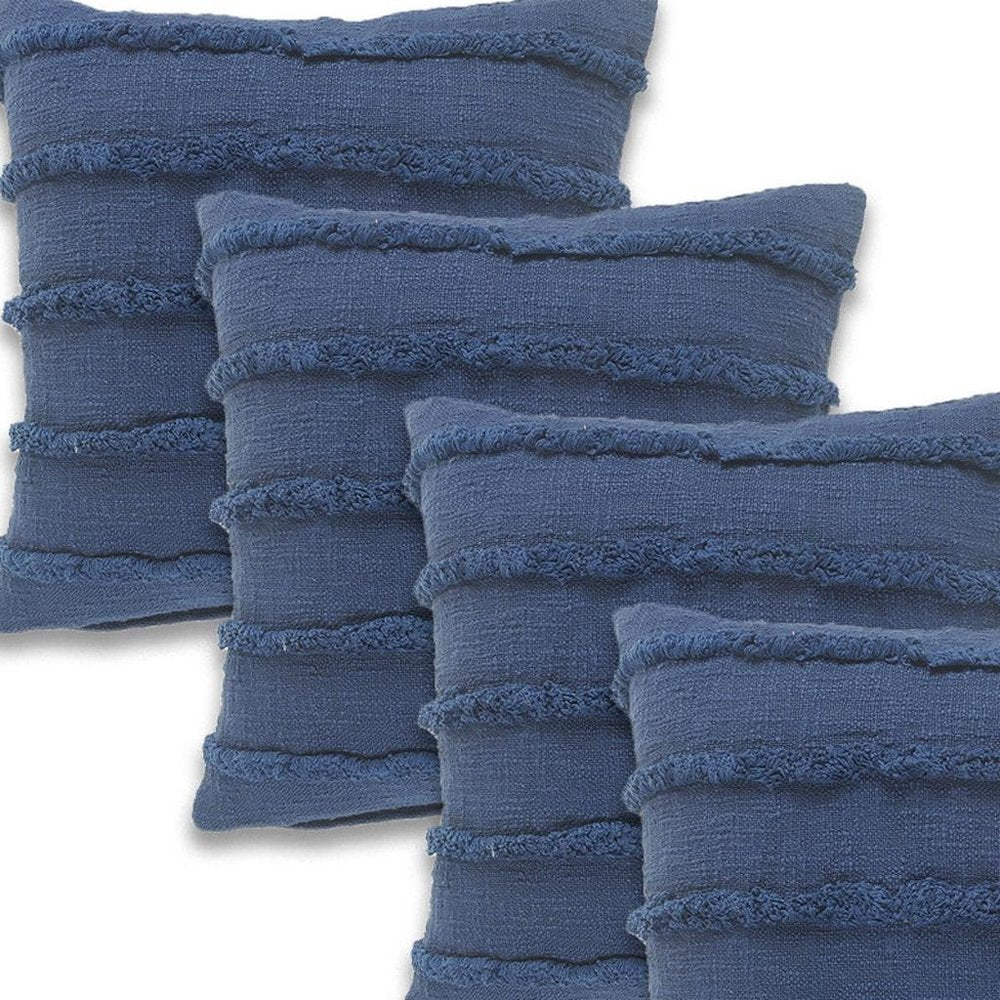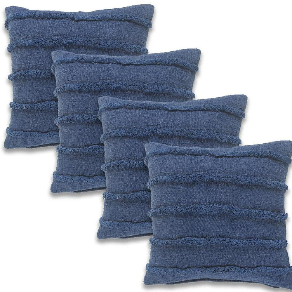 Set of Four 20" Dark Blue Striped Cotton Throw Pillows