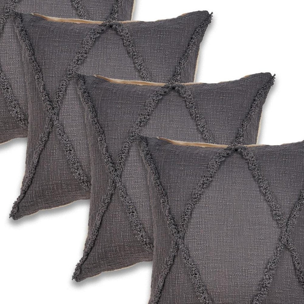 Set of Four 20" Gray And Ash Gray Diamond Cotton Throw Pillows