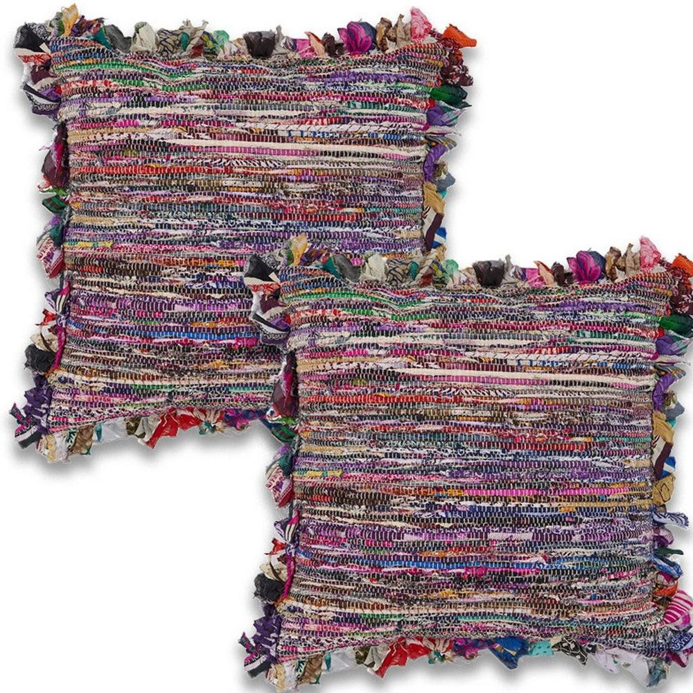 This set of two 18-inch pink and blue floor striped rayon throw pillow covers will add a beautiful decorative accent to your decor. These red and pink hued pillow covers represent quality construction, expertly made from durable rayon that is not only long lasting but super soft to the touch as well. Pillow covers are a good idea for anyone that loves to decorate or accent their space with color and texture. Combine with your own fill or insert to add decoration and dimension to your favorite chair, accent your sofa, or to use as part of your bed ensemble. 18.00-inch h x 18.00-inch w x 0.25-inch d.