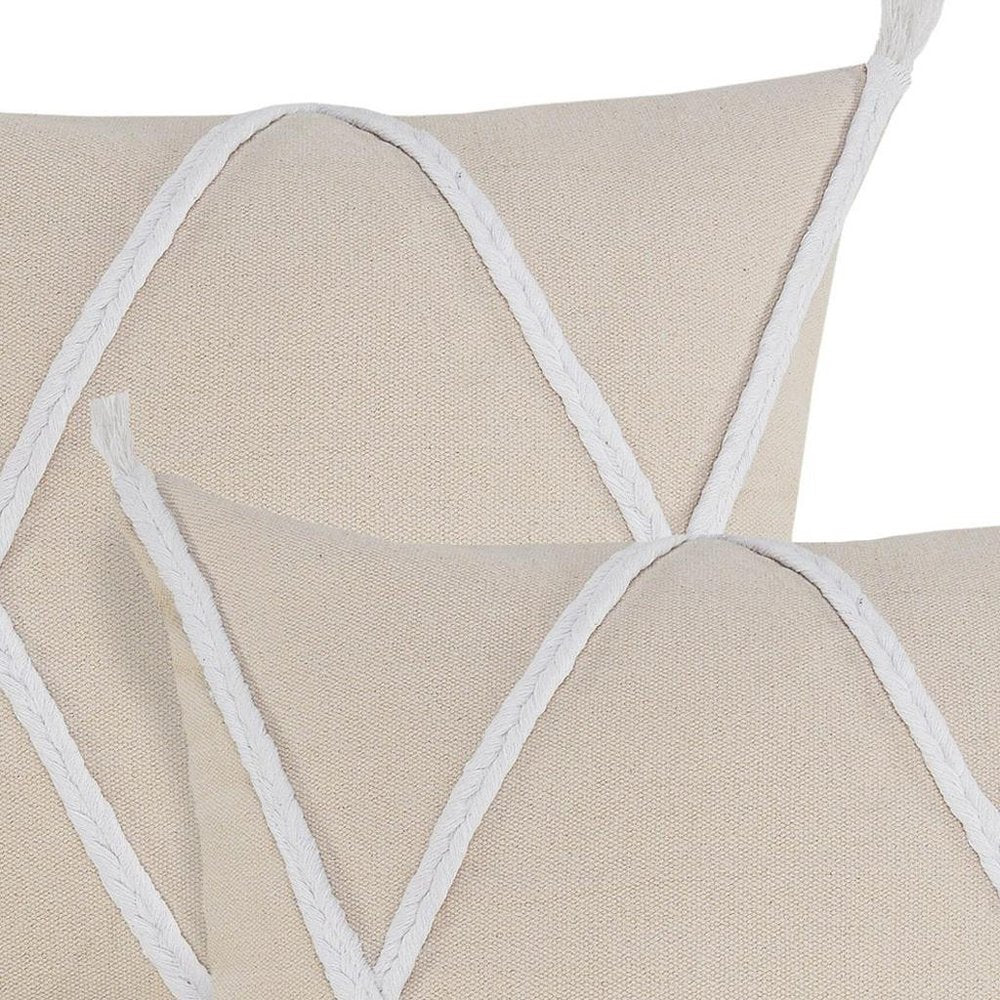 Set of Two 20" Beige And Brown Geometric Cotton Throw Pillows