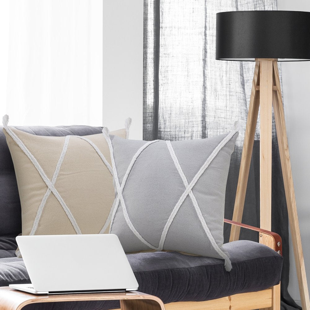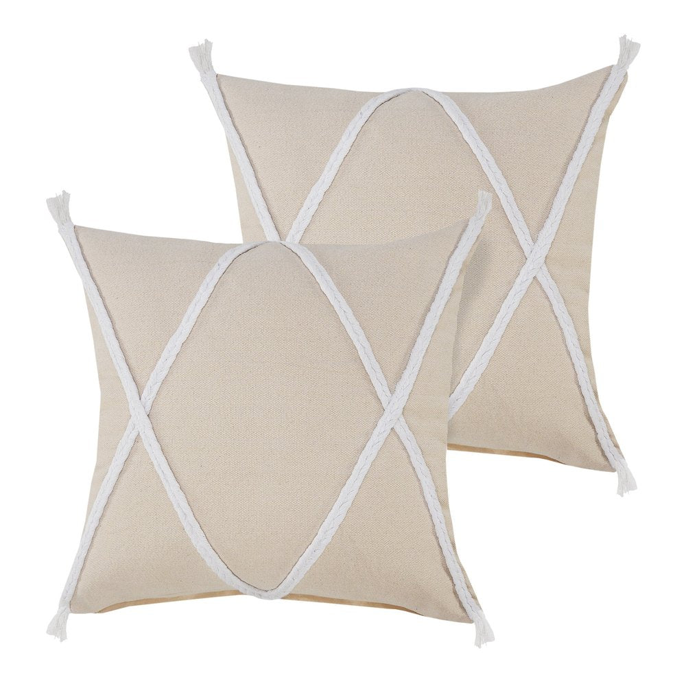 Unique and decorative, this comfortable set of two 20-inch beige and brown geometric cotton throw pillows will leave a lasting impression. These beige and brown hued pillows represent quality construction, expertly made from durable cotton that is not only long lasting but super soft to the touch as well. This soft polyfill filled pillow not only is decorative but made to be comfy and cozy all day long. Great to use on its own or mix with other decorations for the perfect look. A great decorative accessory to add color and dimension to your favorite chair, accent your sofa, or to use as part of your bed ensemble. 20.00-inch h x 20.00-inch w x 0.50-inch d.