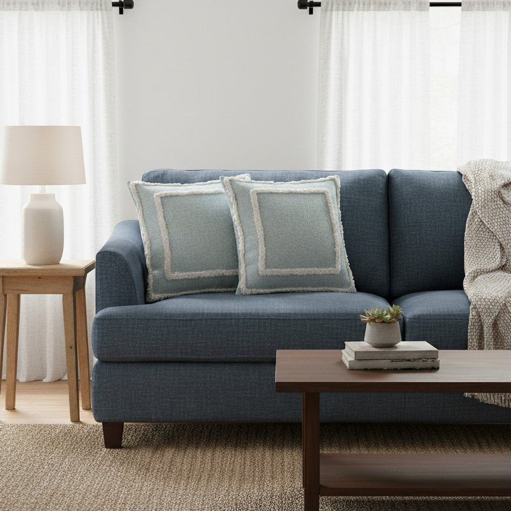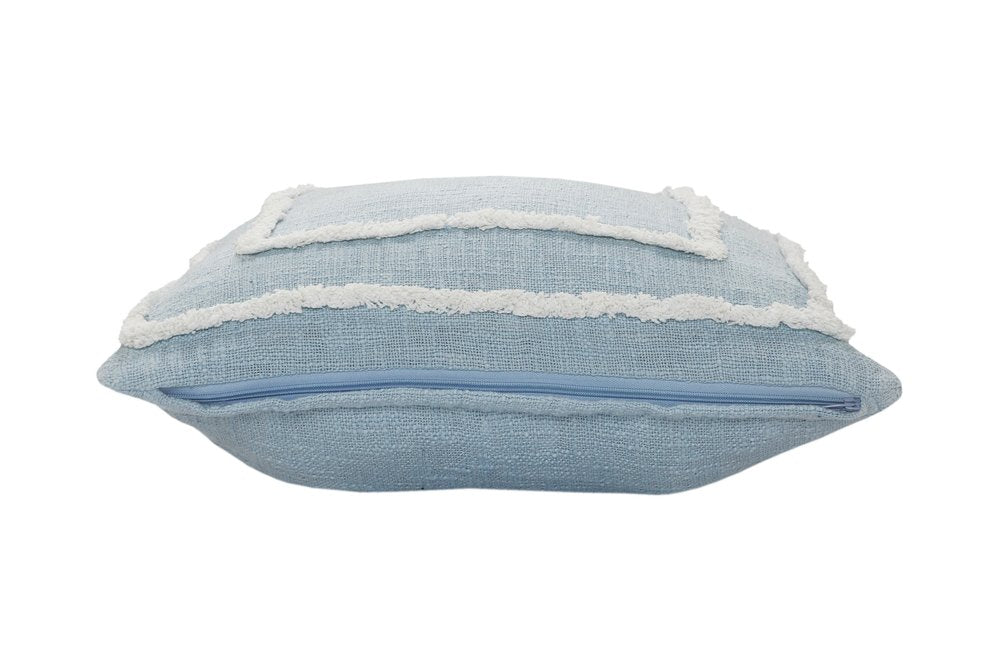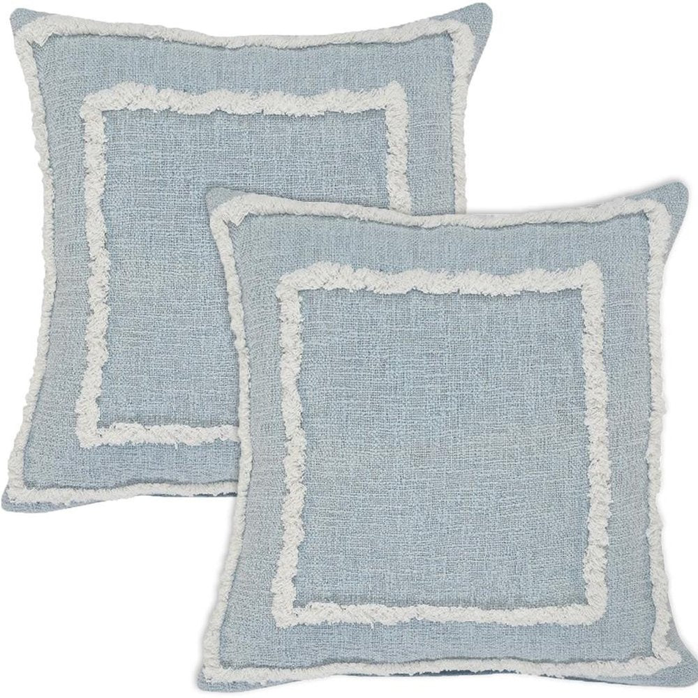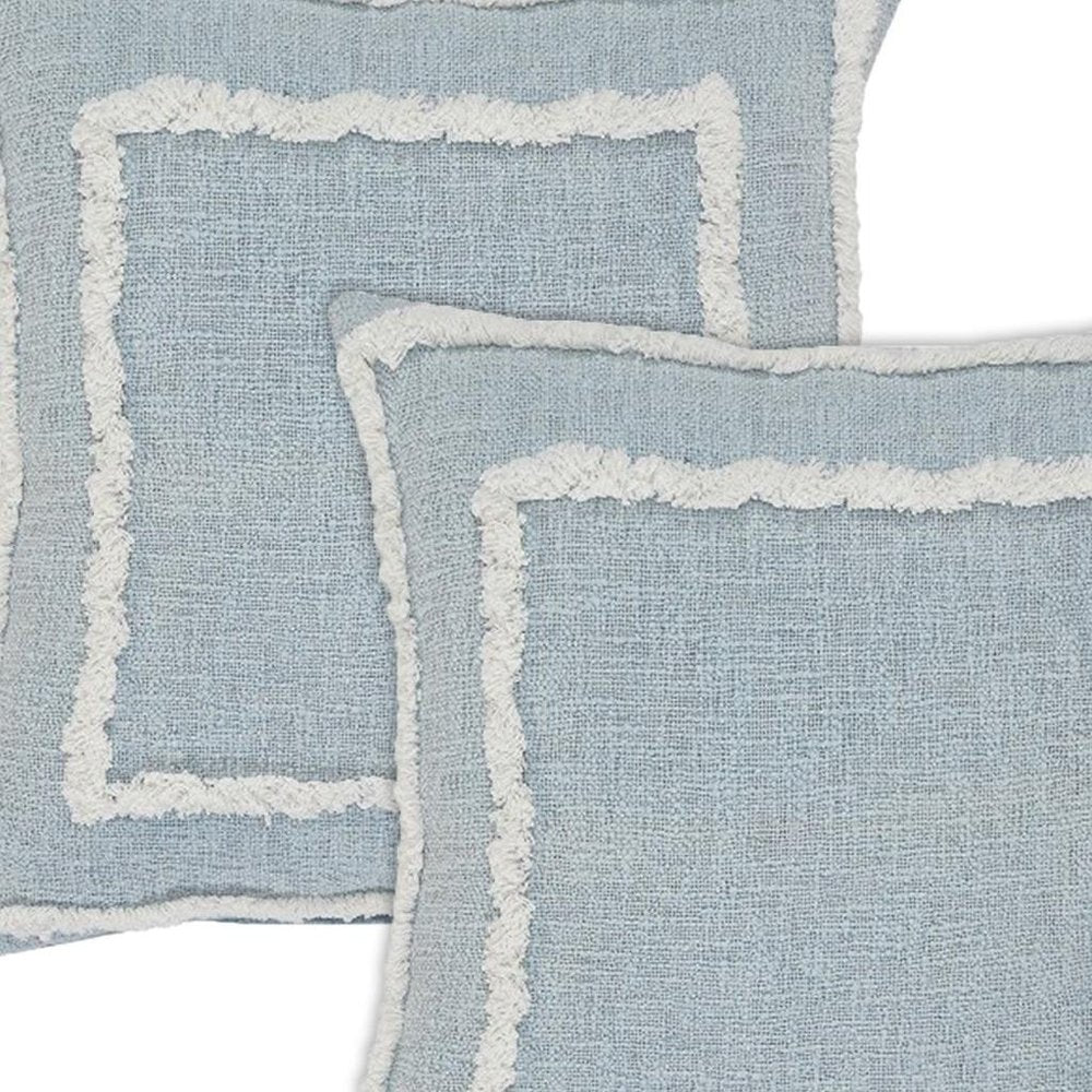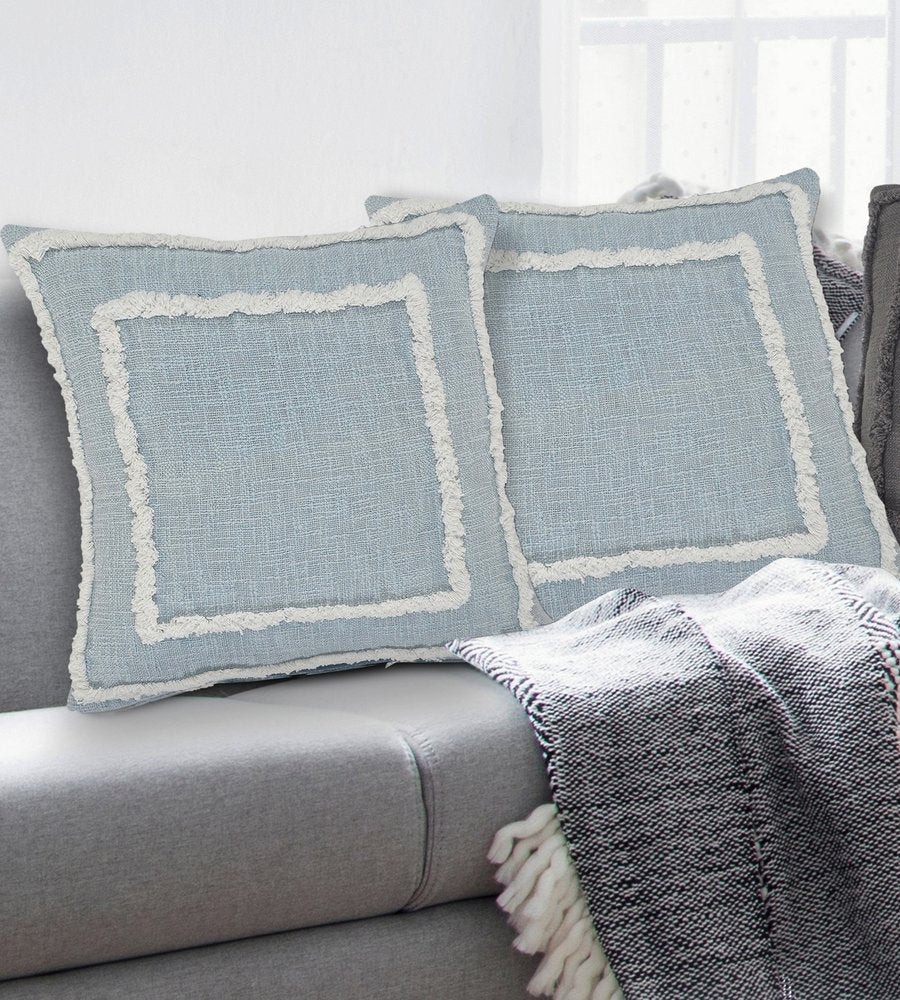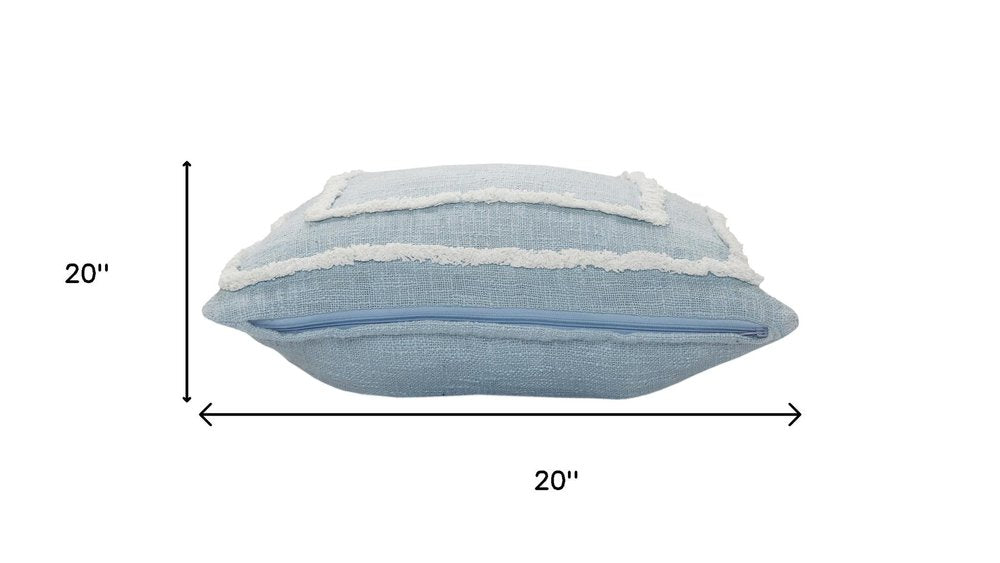 Add an air of fashion to your room and rejuvenate the space with this cute and fashionable set of two 20-inch blue and white geometric cotton throw pillows. The blue and white coloring of the extremely durable and long lasting cotton pillows will add dimension and texture to your space. Super soft and built to hold its shape, this polyfill-filled pillow is a great option. Great to use on its own or mix with other decorations for the perfect look. Decorative throw pillows not only add color and dimension to your space but can be comfy and supportive when you are lounging and cuddling as well. 20.00-inch h x 20.00-inch w x 4.00-inch d.