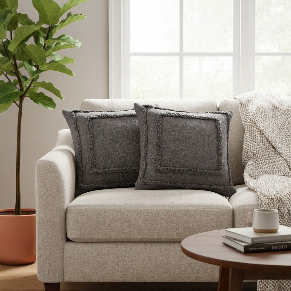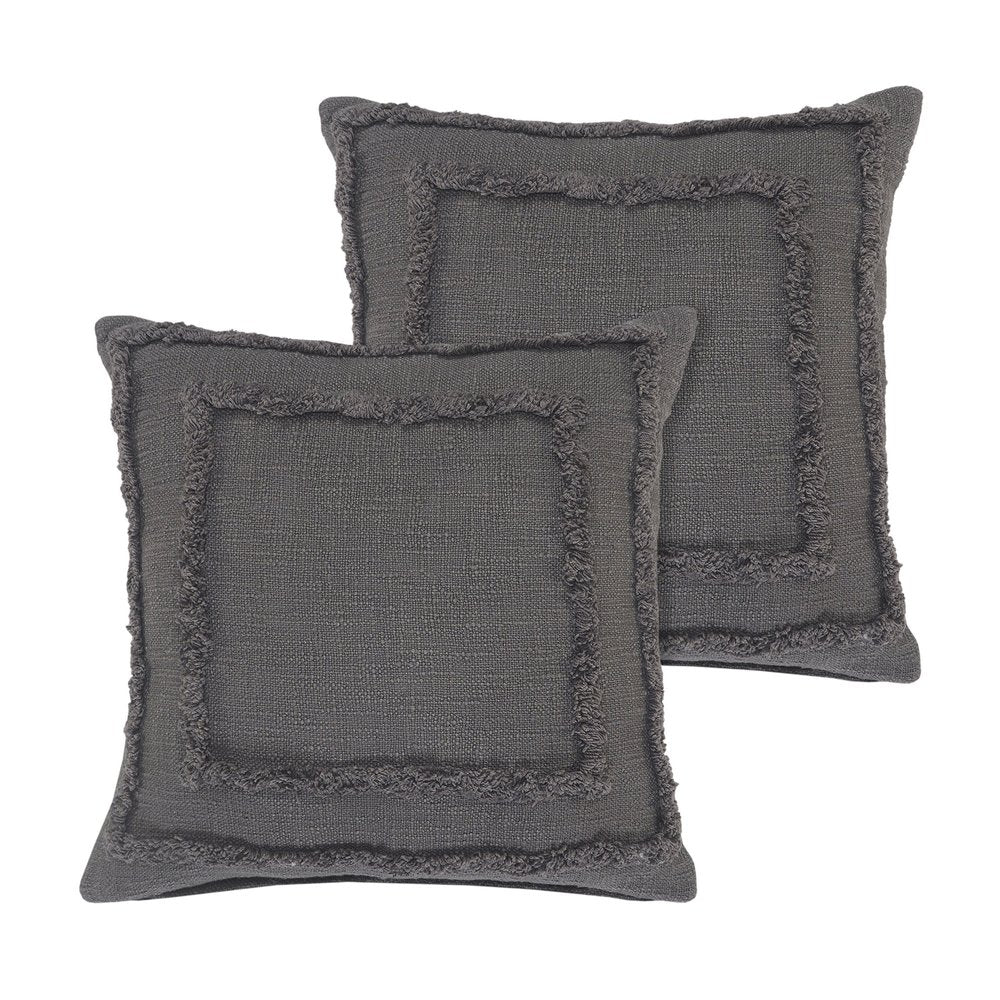 This set of two 20-inch gray and ash gray geometric cotton throw pillows will add a beautiful decorative accent to your decor. The gray and ash gray coloring of the extremely durable and long lasting cotton pillows will add dimension and texture to your space. Super soft and built to hold its shape, this polyfill-filled pillow is a great option. Decorative pillows are a great way to change up the look and feel of your space easily and quickly. A great decorative accessory to add color and dimension to your favorite chair, accent your sofa, or to use as part of your bed ensemble. 20.00-inch h x 20.00-inch w x 0.50-inch d.