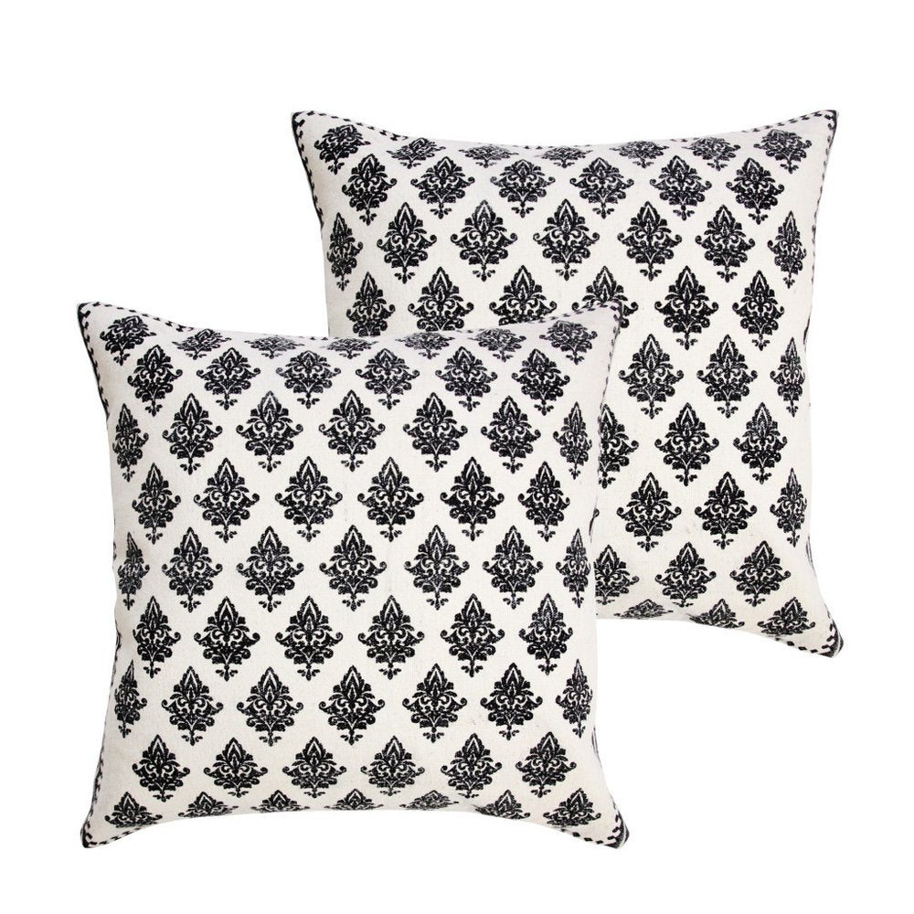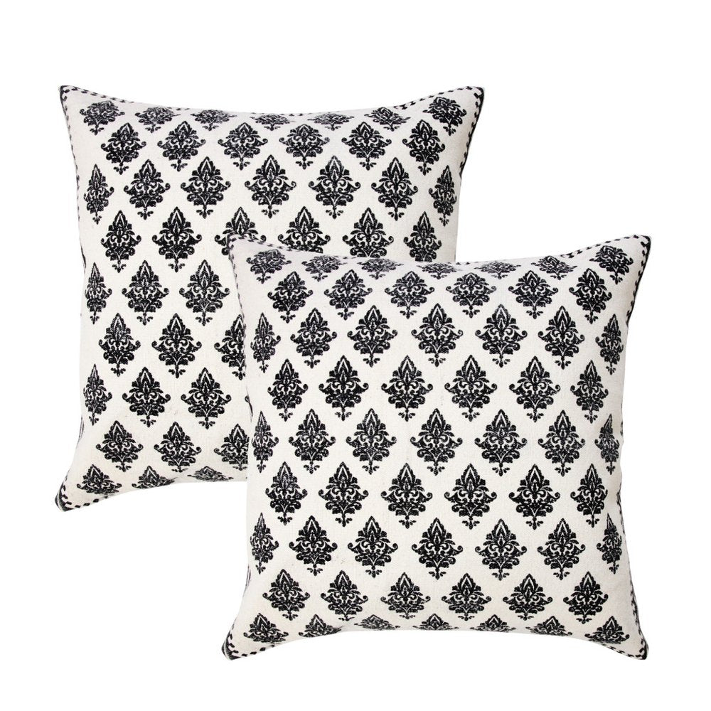 This set of two 20-inch white and black geometric cotton throw pillows will add a beautiful decorative accent to your decor. These white and black hued pillows represent quality construction, expertly made from durable cotton that is not only long lasting but super soft to the touch as well. Super soft and built to hold its shape, this polyfill-filled pillow is a great option. Great to use on its own or mix with other decorations for the perfect look. A great decorative accessory to add color and dimension to your favorite chair, accent your sofa, or to use as part of your bed ensemble. 20.00-inch h x 20.00-inch w x 4.00-inch d.