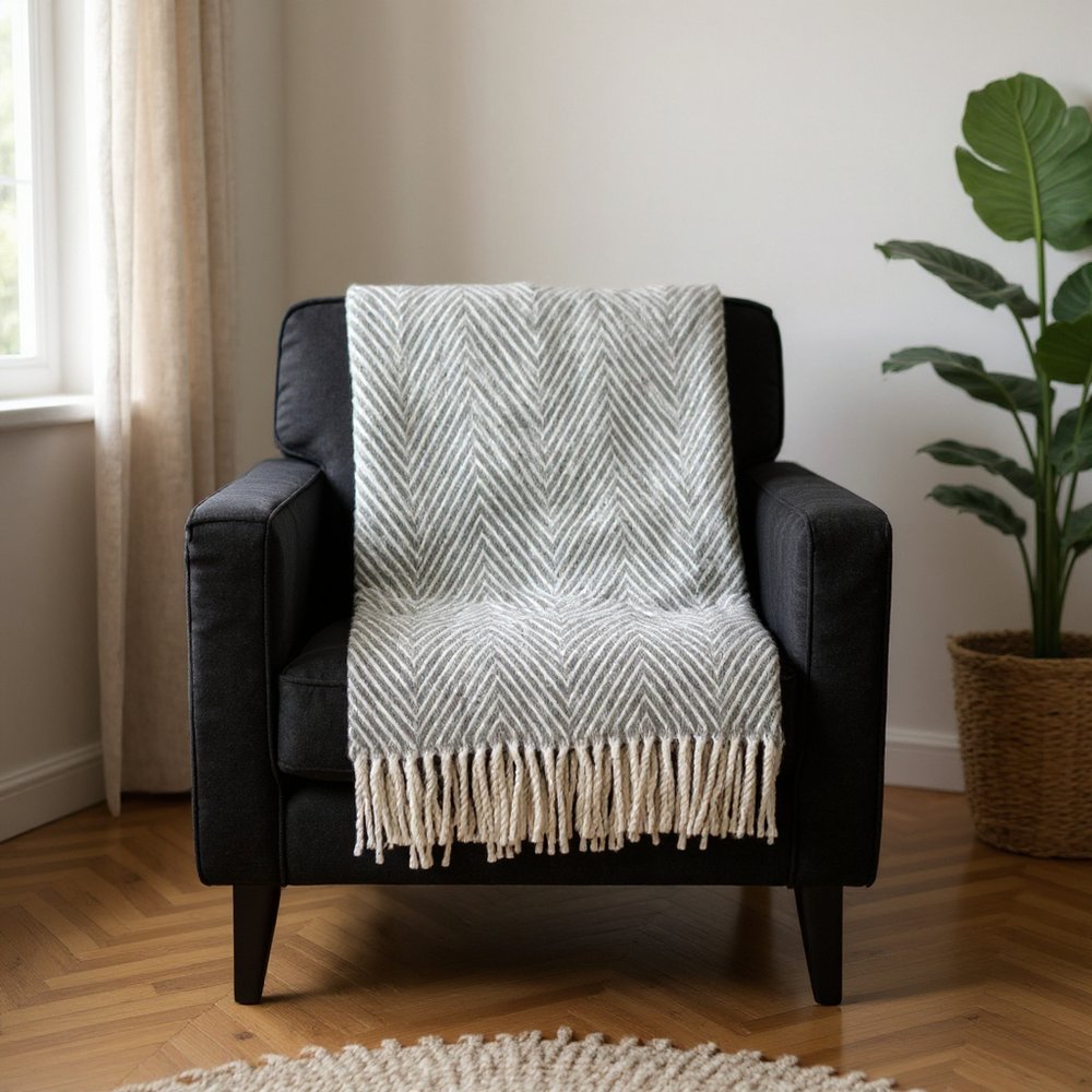51" X 67" Gray Cotton Woven Herringbone Throw Blanket with Fringe