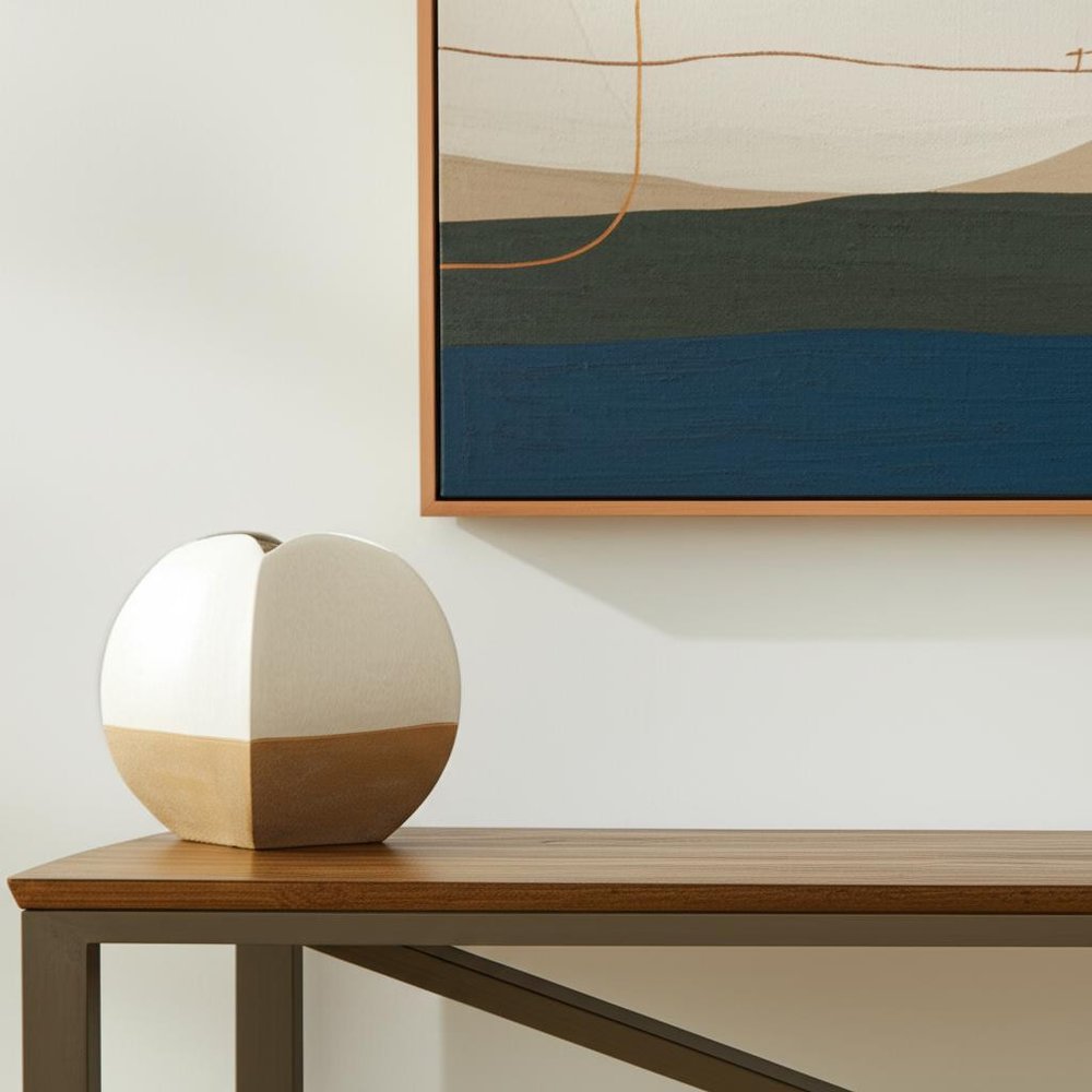 10" Beige And Cream Color Block Ceramic Table Vase