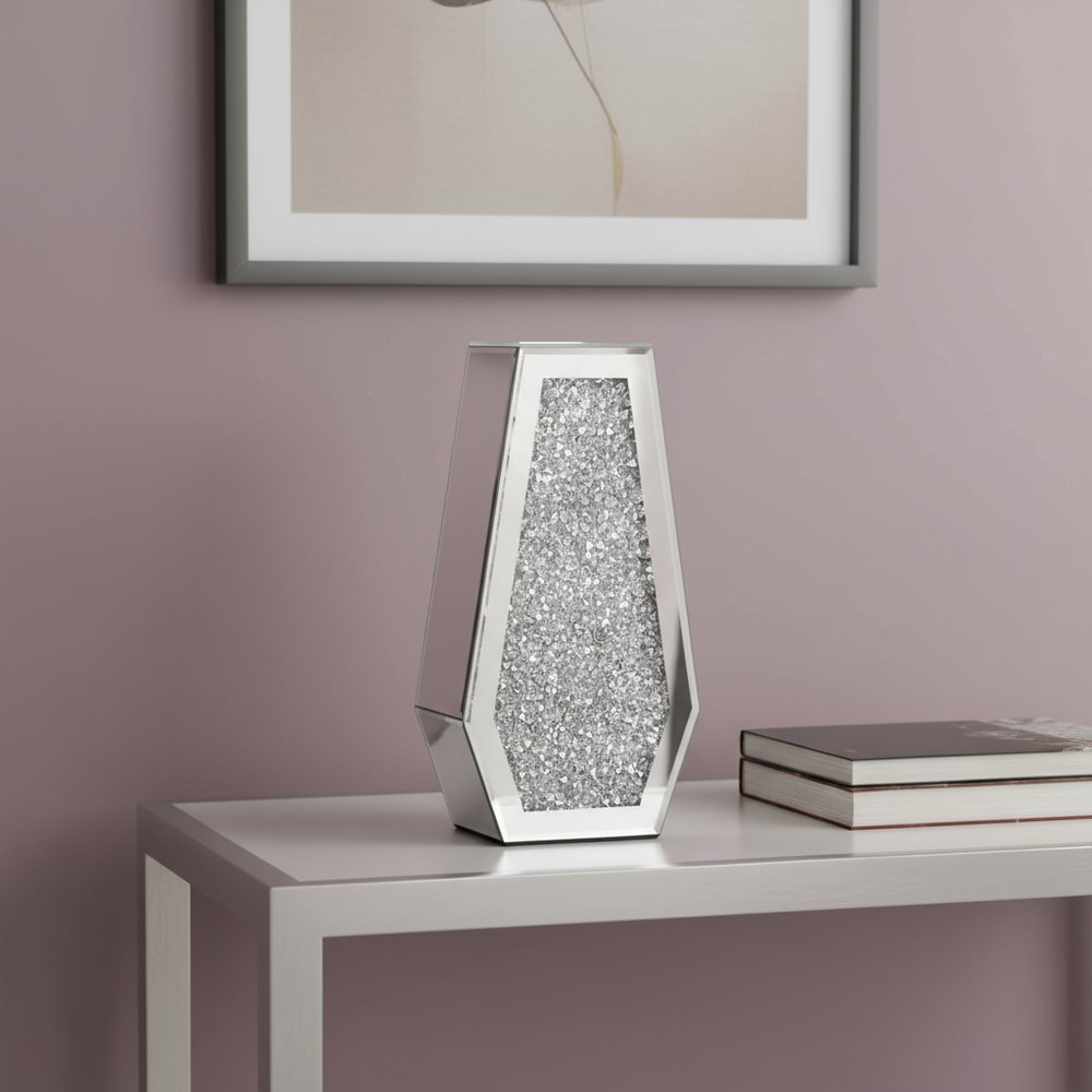 12" Silver Faux Crystal And Mirrored Glass Table Vase