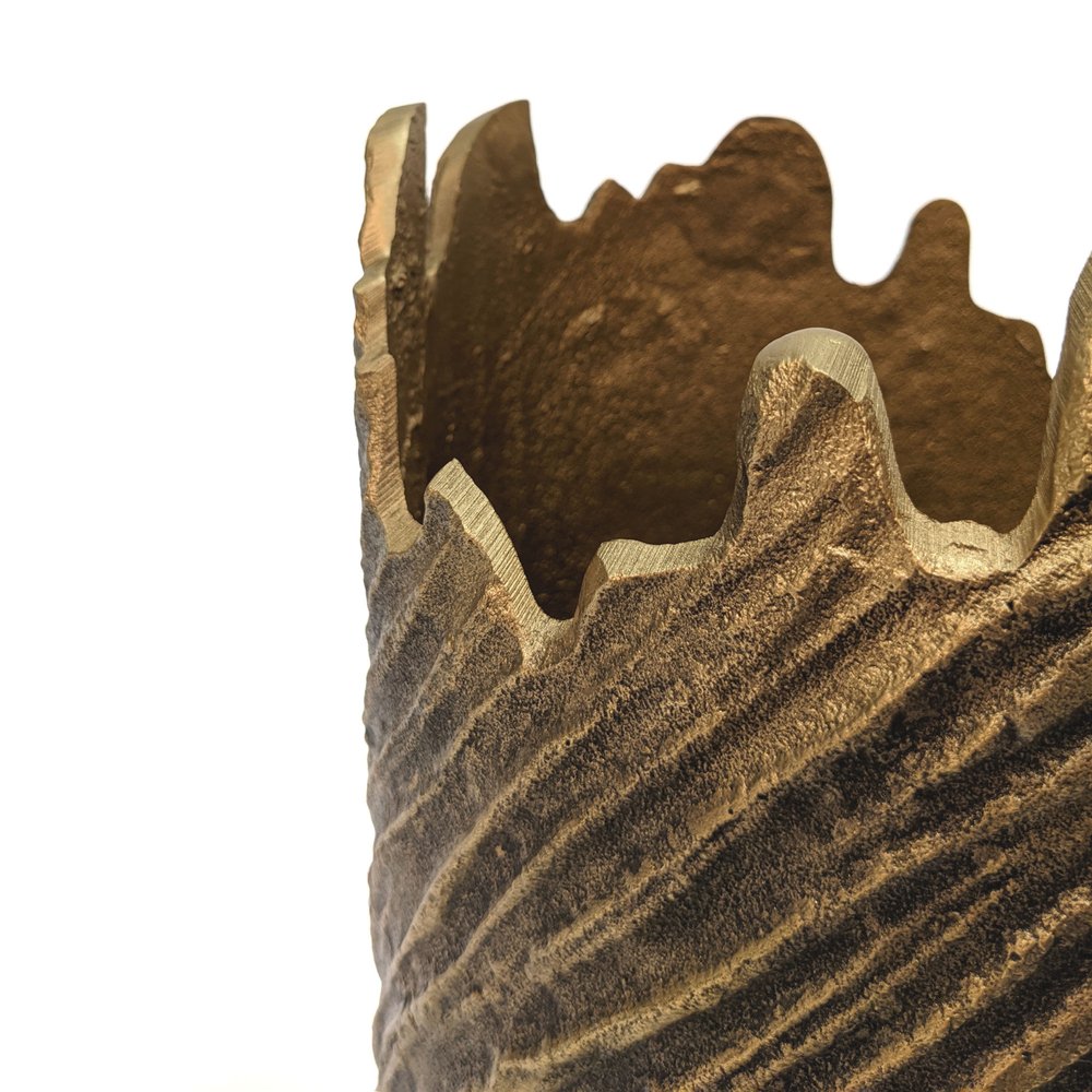Elevate your decor with a touch of sophistication using this 17-inch gold abstract aluminum table vase. Crafted from distressed metal, this modern piece adds a unique charm to any space. The striking gold hue effortlessly complements a range of color schemes, making it a versatile accent for your home. Perfect for showcasing your favorite blooms or simply as a standalone statement piece, this table vase exudes contemporary elegance. The aluminum construction ensures durability while the abstract design adds an artistic flair to your living room, entryway, or dining area. Enhance your interior styling with this stylish and purposefully distressed table vase that is sure to catch the eye of your guests. 17-inch H x 8-inch W x 8-inch D