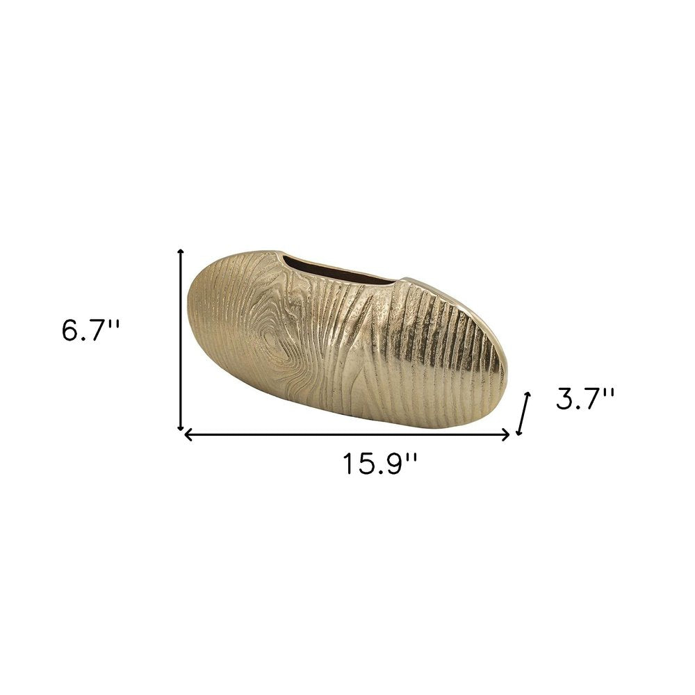Ideal for displaying faux or dried flowers, it effortlessly elevates your home ambiance. This table vase features a sleek oval shape that adds a contemporary touch to any space. Crafted from durable aluminum, it combines strength with an eye-catching design that complements various decor styles. The lustrous finish enhances its modern appeal while making it easy to clean and maintain. Whether placed on a coffee table, console, or dining setting, this versatile piece serves as a stunning centerpiece that draws attention. Ideal for both minimalist and eclectic environments, it creates a harmonious balance between art and function in your living area. 6.70-inch h x 12.80-inch w x 7.70-inch d.
