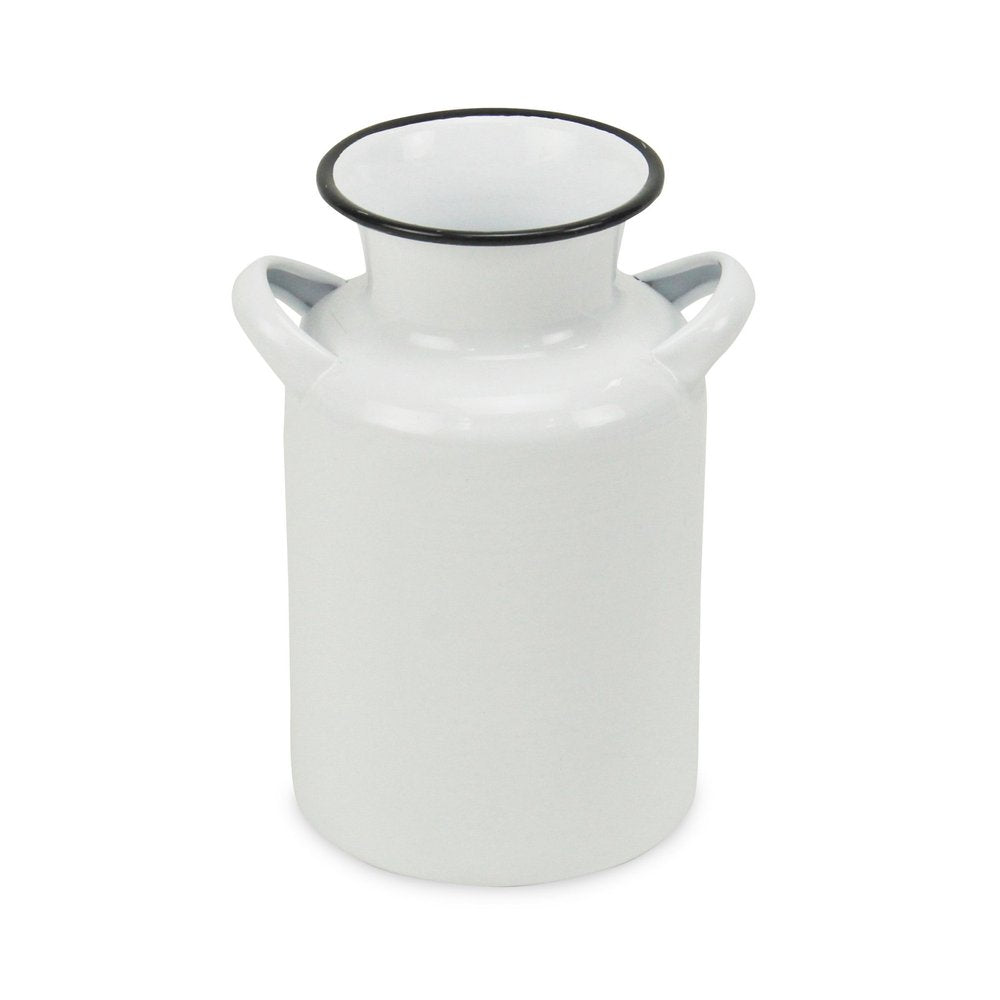 Elevate your decor with the 8-inch black and white metal jug vase, a hand-painted masterpiece that exudes transitional style effortlessly. Crafted from metal, this stunning vase combines the classic colors of black and white in a unique design that will complement any room. The jug vase type adds a touch of elegance to your floral arrangements, making it a perfect centerpiece for your living space. With meticulous attention to detail, this vase is a true work of art that adds sophistication and charm to your home. Let your creativity shine by displaying fresh or artificial flowers in this exquisite jug vase, creating a striking focal point for any tabletop or shelf. 8-inch h x 4.75-inch w x 4.75-inch d.