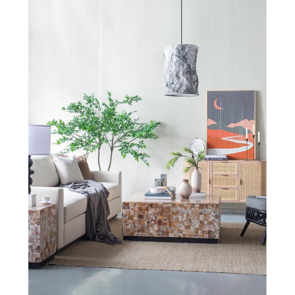 The 8-inch ivory and brown round ceramic table vase is a stunning addition to any room's decor. Crafted from high-quality ceramic, this vase features a unique round shape that enhances its visual appeal. The bohemian rustic style brings a touch of artistry, making it an ideal centerpiece for your table. Each piece is hand-painted, showcasing intricate details that reflect skilled craftsmanship. The purposeful distressing adds character and charm, making it not just a vase, but a conversation starter. Perfect for showcasing flowers or simply as a standalone decorative piece, it combines functionality with aesthetic delight, making it a must-have for those who appreciate distinctive home decor. 8.1-inch h x 11.8-inch w x 11.8-inch d.