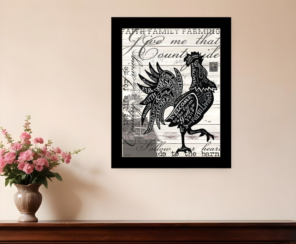 WELCOME TO THE FARM CHICKEN Black Framed Print Wall Art