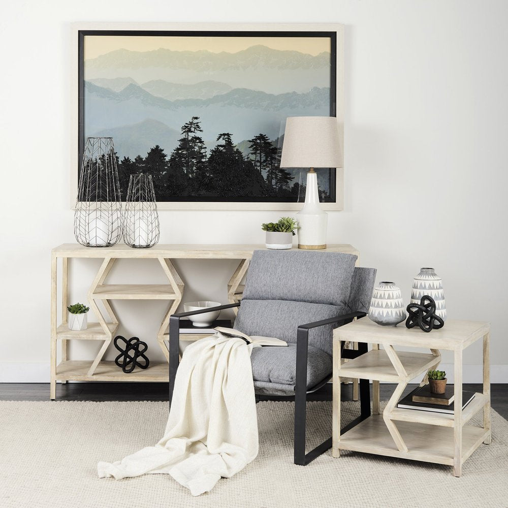 This 10-inch black metal chain link tabletop sculpture is the perfect modern with a touch of industrial styling decorative accessory for your home. Crafted from from solid metal with an organic style hammered texture and a black finish that gives the piece vintage vibes. There are three separate oval metal shapes that intersect to create this 3D chain link shape. Display it on your bookshelf, or use it as coffee table decor. 10-inch H x 10-inch W x 10-inch D