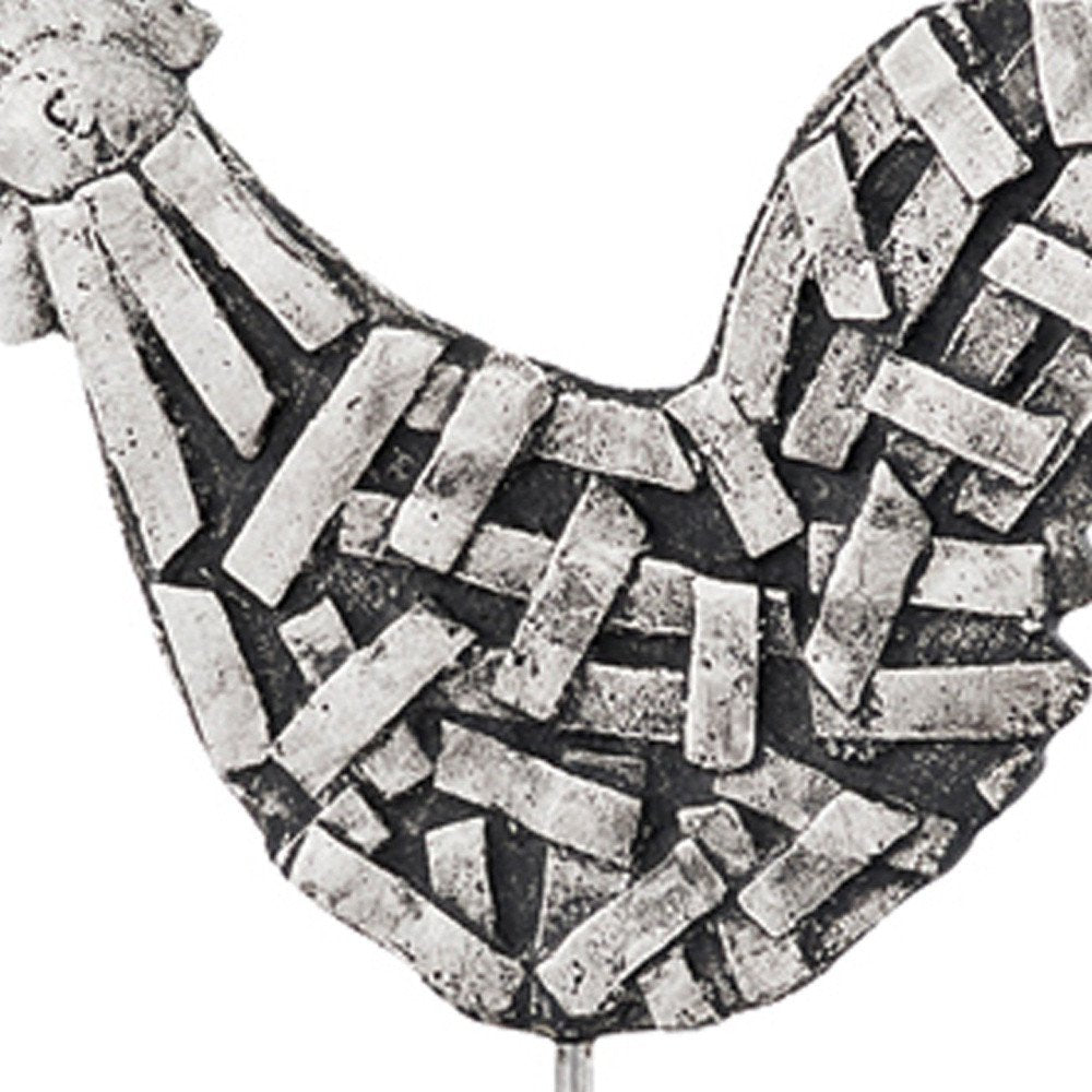 This handsome tabletop sculpture exudes transitional style and is crafted from premium aluminum, showcasing a captivating blend of black and silver hues. With its sleek design and intricate detailing, this piece effortlessly elevates any space with a touch of sophistication. Ideal for those seeking a modern decorative accent that adds a contemporary flair to their home decor. 10.5-inch H x 4-inch W x 9.5-inch D