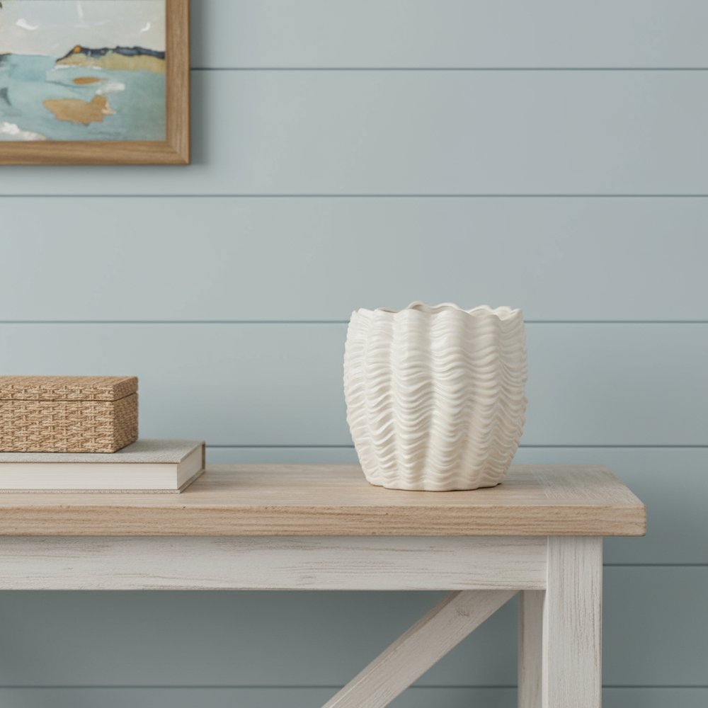 11" Cream Ceramic Sculptural Waves Table Vase
