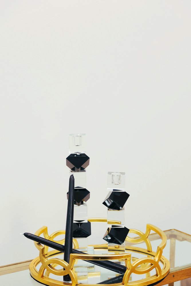 This 12-inch black and clear crystal tabletop taper candlestick is a great addition to your home decor and sure to complement your existing furniture. Add an extra pop of personality to every corner of your home with this gorgeous candleholder. The geometric stacking crystal shape and chic color combination gives this piece some decidedly modern flair. 12.25-inch h x 2.75-inch w x 2.75-inch d.