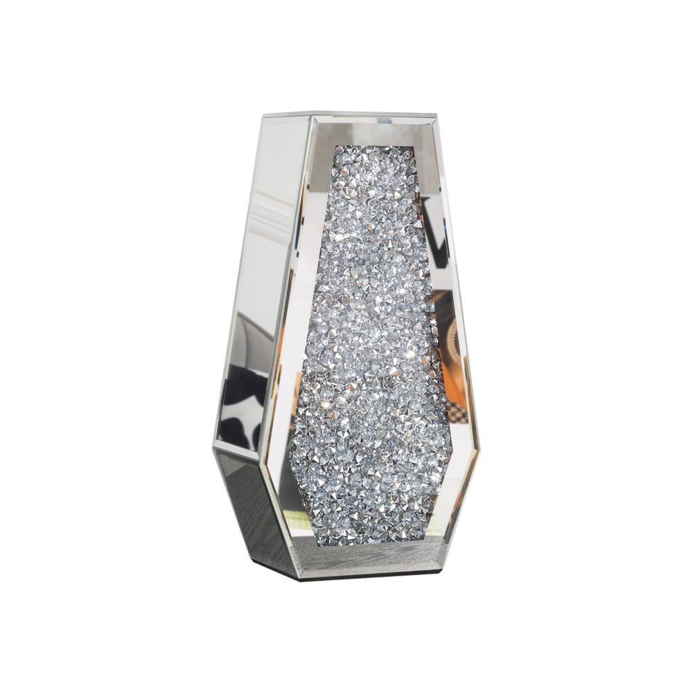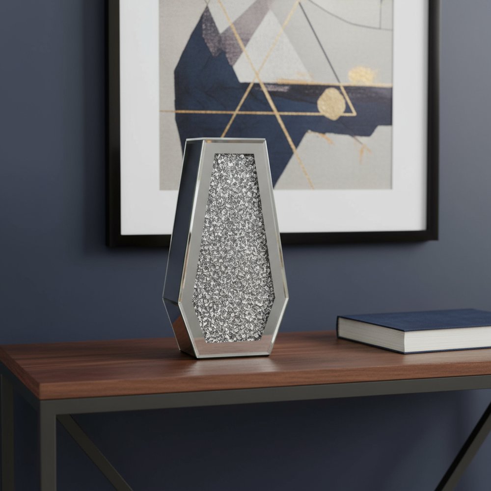 12" Silver Faux Crystal And Mirrored Glass Table Vase