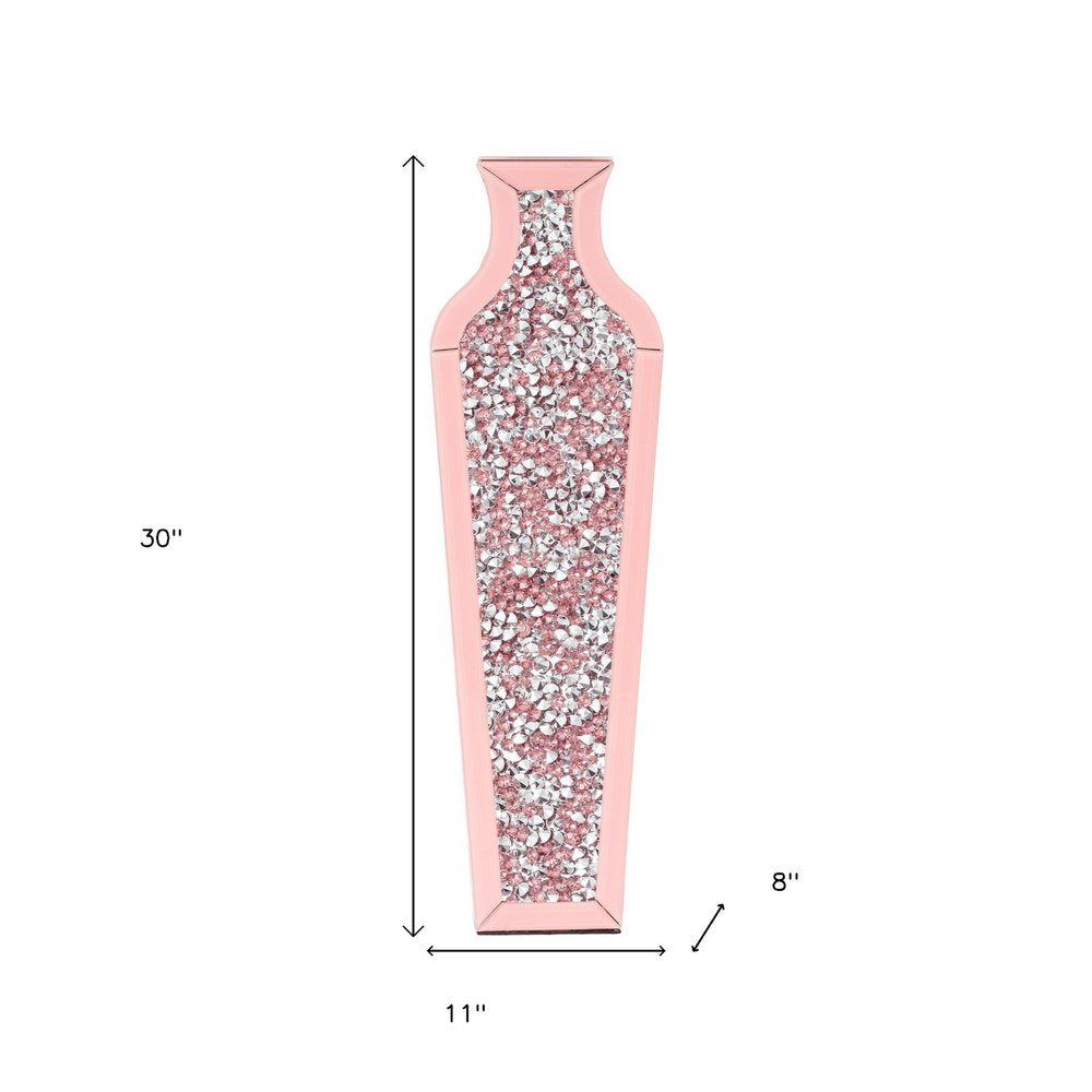 27" Pink Mirrored Glass Floor Vase With Faux Crystals