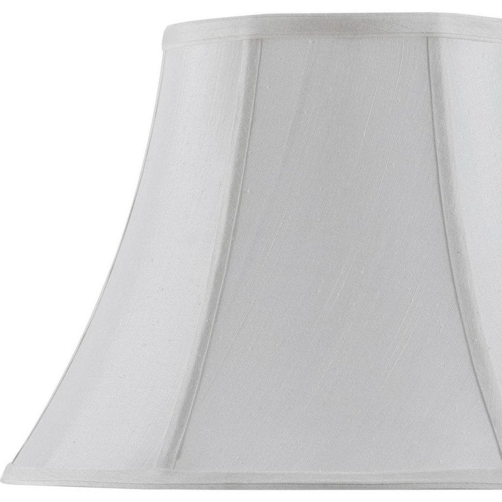 The white linen piped bell lamp shade adds a touch of elegance to any lighting fixture. This traditional-style lamp shade features a charming bell shape that enhances its timeless appeal. Made from high-quality linen, it offers a soft texture and a solid white color that seamlessly blends with various decor styles. The piped detailing provides an extra layer of sophistication, making it an excellent choice for both classic and contemporary settings. With an attachment type of spider, installation is straightforward and secure. Measuring 8.5 inches in both top width and depth, this shade is designed to fit a variety of lamps, ensuring a perfect match for your home lighting needs. 10.88-inch h x 16.00-inch w x 16.00-inch d.